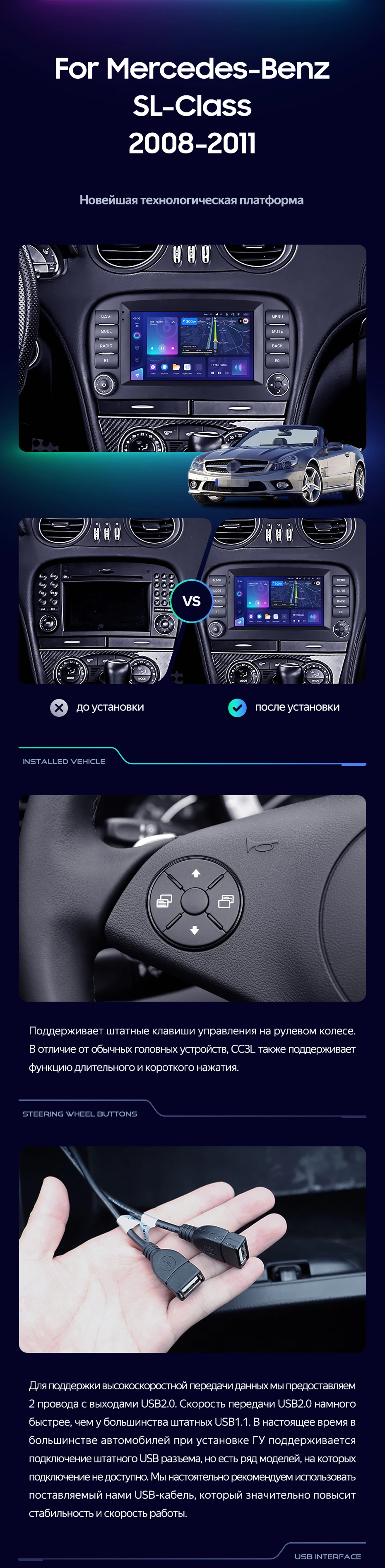 Переходная рамка Mercedes-Benz SL-Class R230 (2008-2011) (7") - купить всего за 7 000 руб. в интернет-магазине в Южно-Сахалинске Teyes.com.ru. ✓ Самый лучший выбор мультимедиа ✓ Лучшая замена штатному ГУ ✓ Тел. +7 (800) 775-31-74
